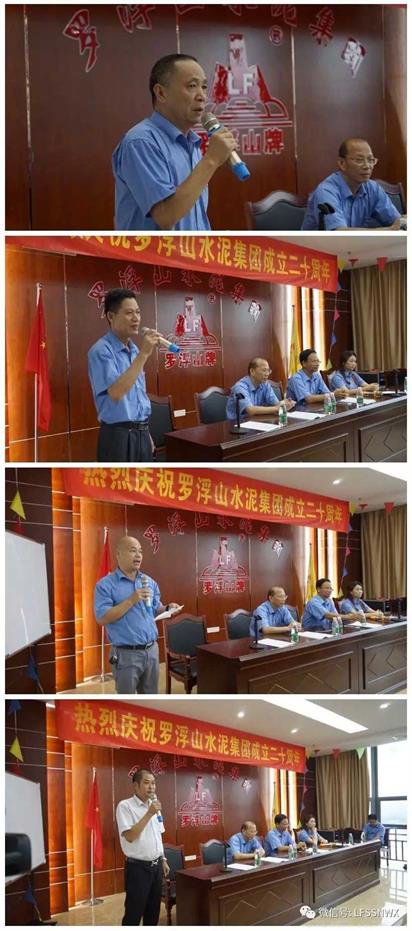 羅浮山水泥集團董事長吳國強回顧了20年的發展歷程,展望羅浮山水泥集團未來的發展前景,同時也向辛勤勞動、日夜奮戰在工作崗位的全體員工表示衷心的感謝與崇高的敬意。并堅信羅浮山水泥人一定會帶著自己的夢想與責任,在社會各界的大力支持下,乘勢而上,以更加昂揚的斗志和百倍的努力,為實現羅浮山水泥集團更宏偉的目標、創造更加美好的未來作出新的更大的貢獻!二十年,只是企業發展的一個小階段,百年大計,才是我們的目標,相信在吳國強董事長的英明領導下,在全體員工的共同努力下,這個目標終將實現!