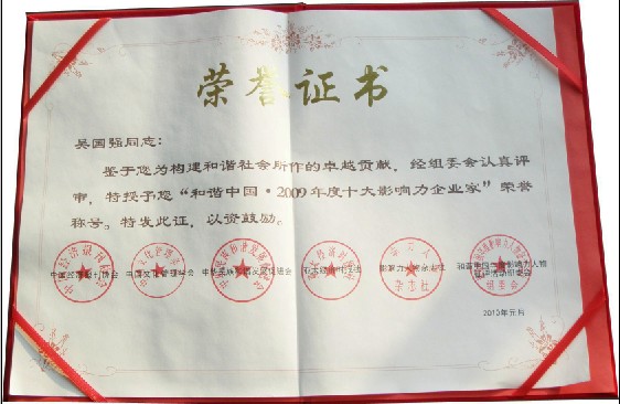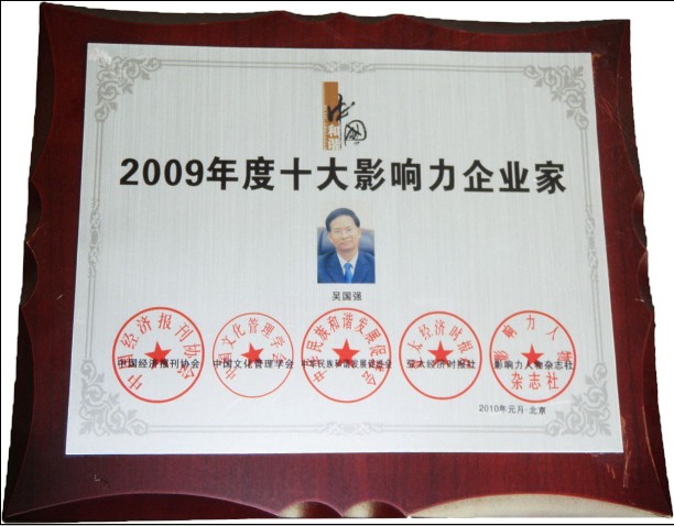 吳國強董事長榮獲“2009年度十大影響力企業(yè)家”稱號