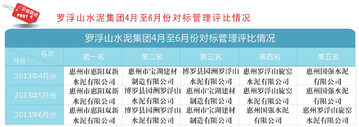 6月22日上午、6月25日至26日, 羅浮山水泥集團(tuán)常務(wù)副總戰(zhàn)兼財(cái)務(wù)總監(jiān)謝偉松、集團(tuán)辦公室主任李麗華、集團(tuán)質(zhì)監(jiān)中心主任曾崽平與集團(tuán)下屬各廠抽派的總經(jīng)理(或副總經(jīng)理),財(cái)務(wù)抖長(zhǎng)、車間主任、供銷科長(zhǎng)、化驗(yàn)室主任、行政科(組)長(zhǎng)分別組成財(cái)務(wù)考核小組、生產(chǎn)考核小組、供銷考核小組、化驗(yàn)室考核小組、行政考核小組,對(duì)各廠的對(duì)標(biāo)管理工作進(jìn)行檢查考核。羅浮山水泥集團(tuán)董事長(zhǎng)兼總哉吳國(guó)強(qiáng)參加了最后的檢查總結(jié)匯總會(huì)。為了使8S管理活動(dòng)得到扎實(shí)有效的推行.完善公司的行政管理制度,集團(tuán)公司決定: 從2013年第二季度對(duì)標(biāo)管理檢查開始增設(shè)行政考核小組,將行政工作指標(biāo)(含88管理)納入對(duì)標(biāo)管理季度考核當(dāng)中。